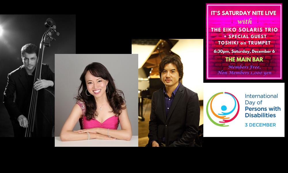 It's Saturday Nite Live! The Eiko Solaris Trio + Special Guest Toshiki on Trumpet 18:30 - 21:00, December 6, 2025 To celebrate the annual United Nations International Day of Persons with Disabilities (IDPD) three days earlier, SNL welcomes back vocalist Eiko Solaris and her trumpet-...