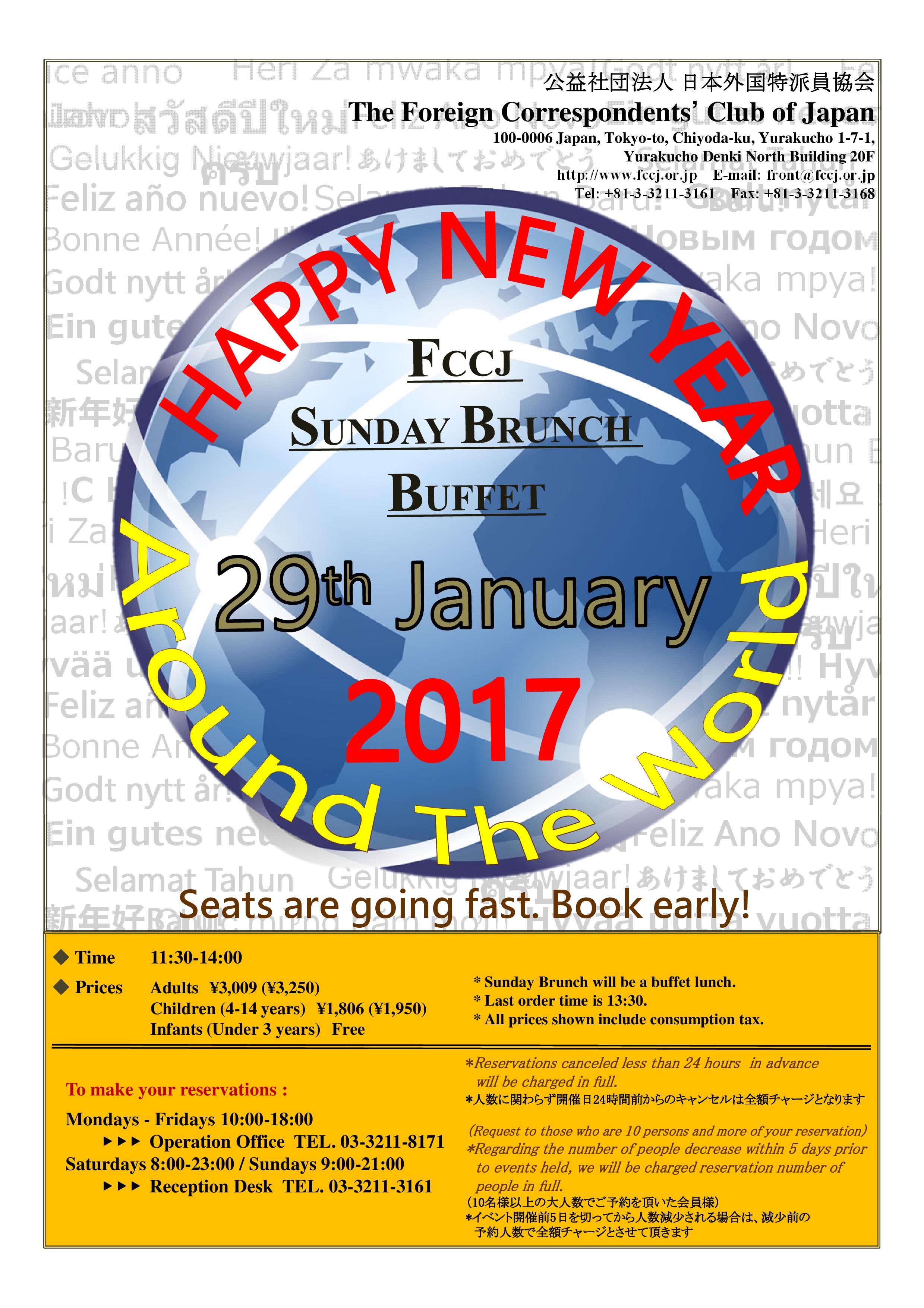 Sunday Brunch Buffet Themed “Happy New Year around the World" Sunday, January 29, 2017, 11:30 - 14:00
