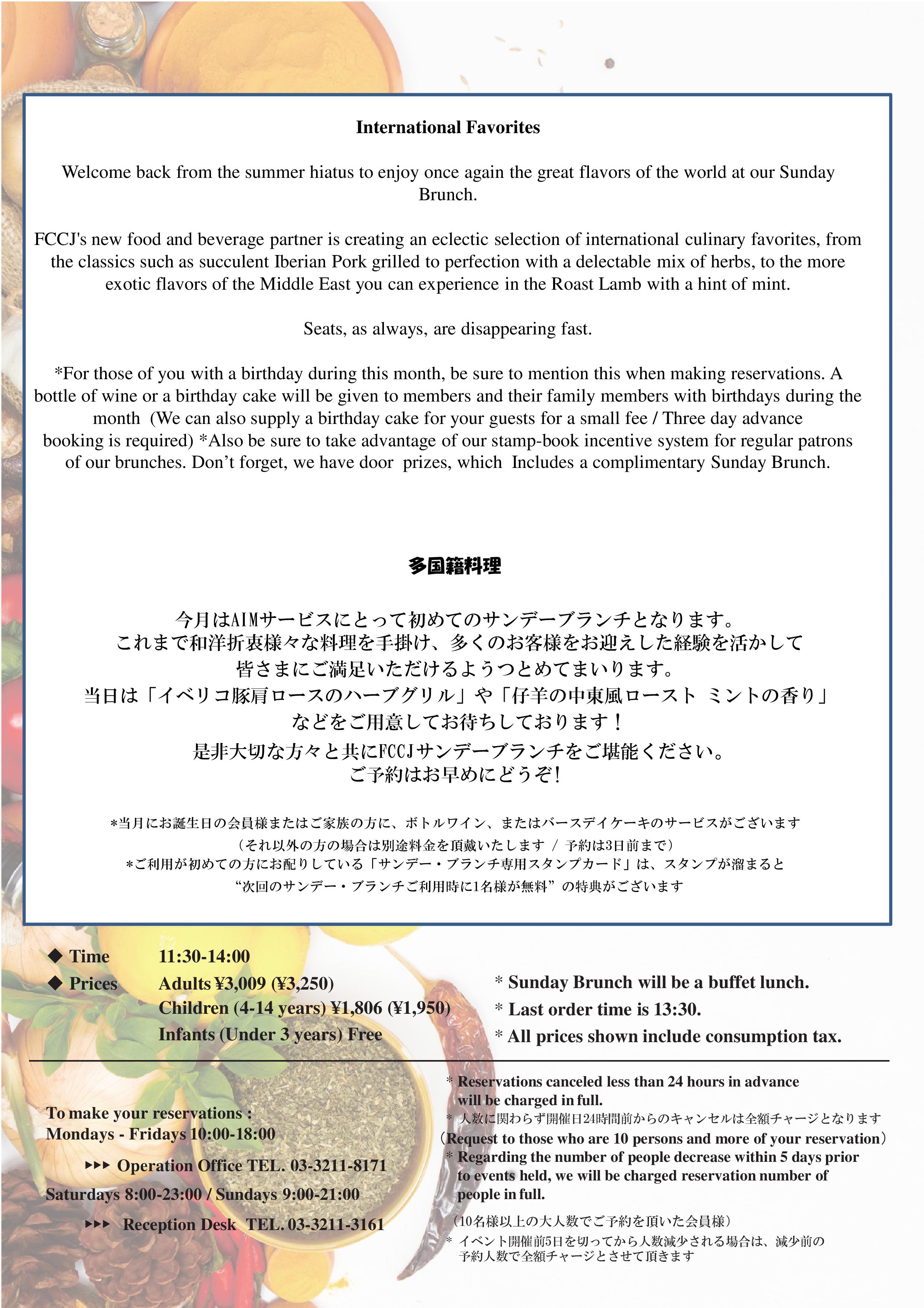 Sunday Brunch Buffet Themed “International Favorites"