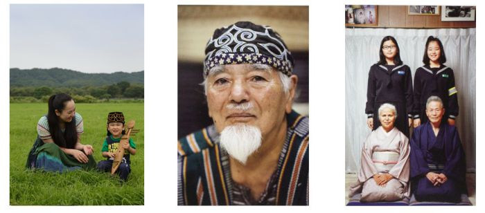 全国の写真展やロンドンのナショナル・ジオグラフィック店で作品を発表してきた宇井氏ですが、アイヌの現状を伝えきれないというもどかしさを抱えていました。そこで2009年に100組のアイヌ民族を100カ所で撮影し、写真集にまとめる事で、日本各地に暮らすアイヌの「今」を伝えるというプロジェクトを立ち上げました。このプロジェクトでは、ポートレート撮影の場所や衣装は被写体それぞれが決めるようにして2009年から2016年までの7年間で、100人のアイヌを写真でつなぐことに成功しました。