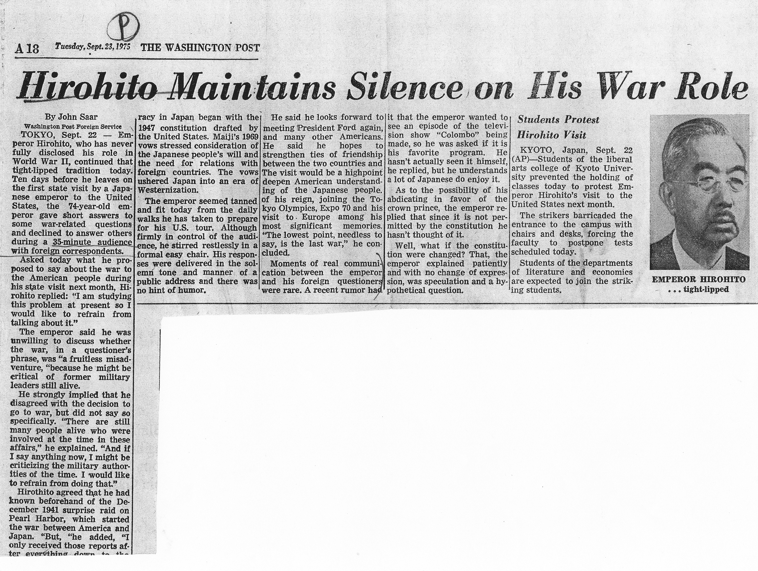 The press conference was widely reported not only overseas but also in Japan. Shortly afterwards, a Japanese reporter asked a club member: Why does the American press intend to fix responsibility for World War II on the emperor?