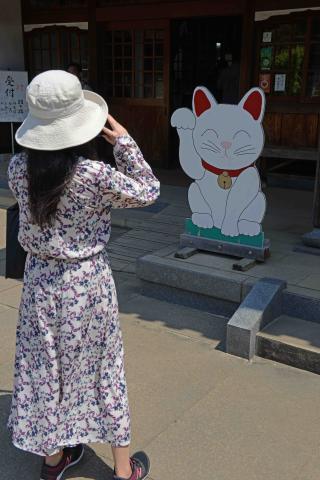 Visitor to Gotoku-ji, a Tokyo temple with strong cat associations.