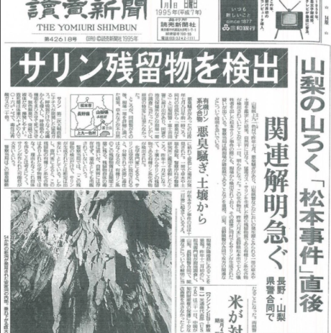 1. The Yomiuri Shimbun: The front page of its issue of January 1, 1995 reported that sarin residue had been detected in the soil outside of Satyam No. 7, an AUM facility in Kamikuishiki, Yamanashi Prefecture, near Mt. Fuji.