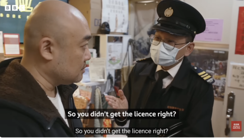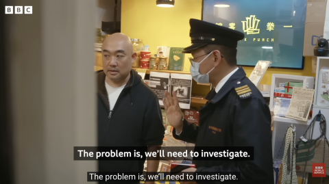 The policeman stays for 15 minutes before leaving, then returns two more times that evening. Pong is told he might be prosecuted for hosting a public event without an entertainment licence. Pong tells the BBC he has been inspected 10 times in 16 days by various departments of the Hong Kong government.