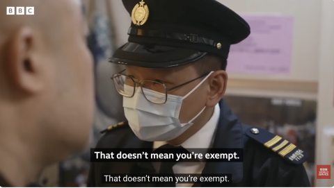 Former banker Innes Tang set up a hotline for the public to inform on their fellow citizens. “We're in every corner of society, watching, to see if there is anything suspicious which could infringe on the national security law," he tells the BBC. "If we find these things, we go and report it to the police."