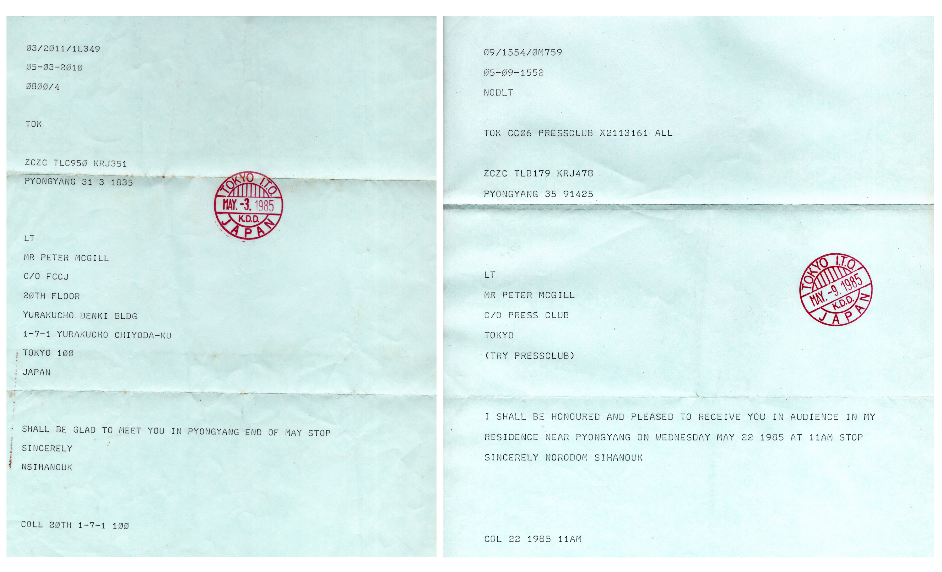 I was 27 and full of adventure and ambition. The idea seemed wildly unlikely but worth a go. I composed a request for an interview in Pyongyang regarding “developments in Cambodia” and sent a telegram from the nearest KDD office, addressed to His Royal Highness, Prince Norodom Sihanouk, Pyongyang. To my gleeful amazement, a reply came on May 3: SHALL BE GLAD TO MEET YOU IN PYONGYANG END OF MAY STOP SINCERELY NSIHANOUK