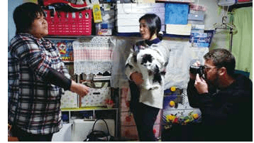 Makiko Segawa fixed and interpreted for Dominic Nahr (TIME), here photographing Terumi, who attempted suicide at her temporary home in Iwaki.